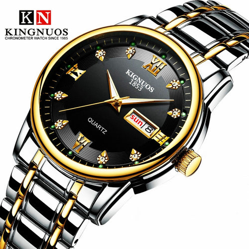 Full Stainless Steel Business Watch Top Brand KINGNUOS Men Wrist Watches Calendar Diamond Date Waterproof Man Quartz Clock Hours