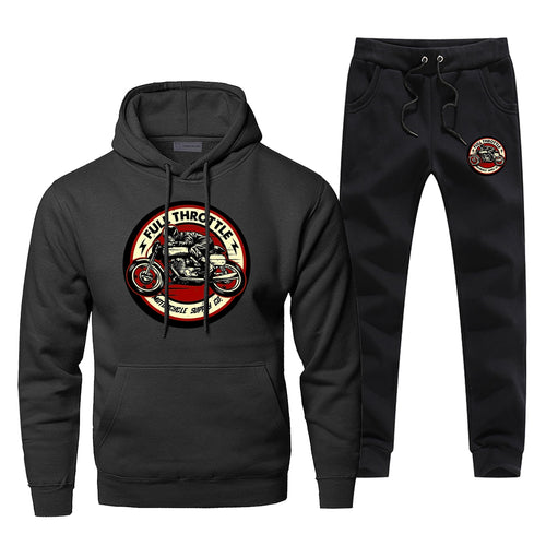 Full Throttle Cafe Sportsman Wear Racer Rockabilly Biker Fashion Balck Complete Man Tracksuit Fitness Casual Men's Sets Men Suit